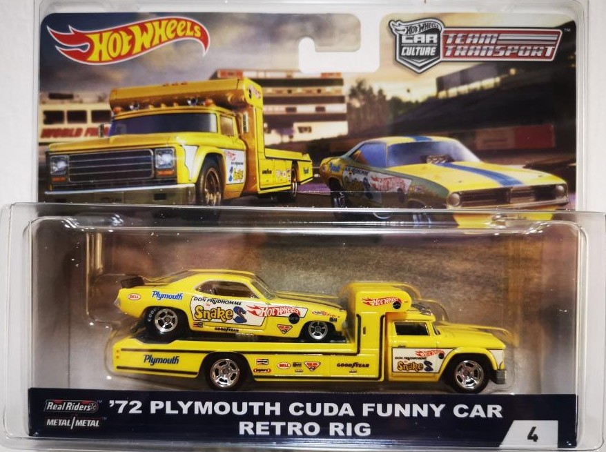 Hotwheels Team Transport #4 : 72 Plymouth Cuda Funny Car & Retro Rig